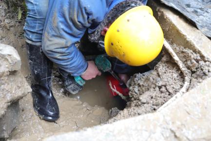 因漏水量大,工作人員來不及更換雨鞋就緊急關(guān)閥止水,為了讓搶修速度更快,師傅們直接跳到1米多深的水泥坑里用鍬、鏟等各類工具開挖漏點(diǎn);拆卸、安裝、焊接,一刻也不停歇;抽干積水,清理路面。大家分工協(xié)作,經(jīng)過四個(gè)小時(shí)的奮力搶修,終于維修完畢,開閘通水。此時(shí),搶修人員的衣服、鞋子早已被水浸透,寒風(fēng)中,大家凍得瑟瑟發(fā)抖、雙手麻木通紅,但他們每個(gè)人的內(nèi)心都充滿了欣慰,因?yàn)樗麄冊谶@個(gè)飄雪團(tuán)圓的小年里,又一次用實(shí)際行動給居民群眾送去了“放心水”。
